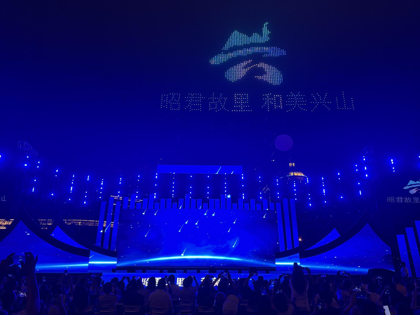 开幕式现场,来自台湾苗栗县、内蒙古呼和浩特等城市的艺术家同台献艺,打造了一场民族交融、情感互通的文化大联欢。城市品牌的全新亮相将活动推向高潮。兴山正式发布以汉字“兴”为骨架的城市LOGO和“少女昭君”“小昭君”“桃花鱼”城市IP形象,让千年昭君文化有了更鲜活的表达;“昭君故里 和美兴山”城市主题口号以及“兴山,一个遇见美的地方! ”“有昭一日来兴山!”宣传语也同步亮相。随后,千架无人机以夜空为幕,变幻出兴山城市LOGO、兴山地标与特色产业等画面,以现代语言创新演绎昭君文化,为现场观众带来一场科技与人文相互交融、震撼视听的精彩演出。