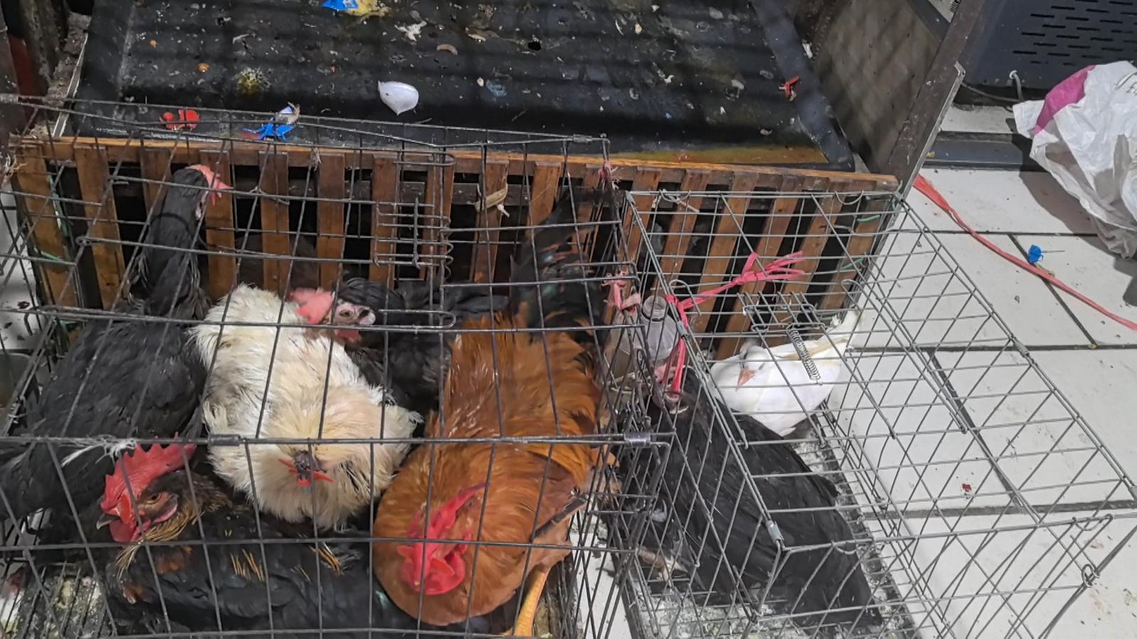 有的商户明目张胆交易和宰杀活禽,有的商户则暗地售卖。伍家岗区隆中路市场有两个售卖白条鸡的摊位,当记者以顾客身份询问有没有活鸡售卖时,两位商户均表示,因为城区禁止交易和屠宰活禽,他们不敢将活鸡公开摆在市场售卖,平时将活鸡放在市场周边的小屋里,如果顾客需要活鸡,他们才会拿到市场里来。顾客可以选择现场宰杀,也可以将活鸡拿回家。