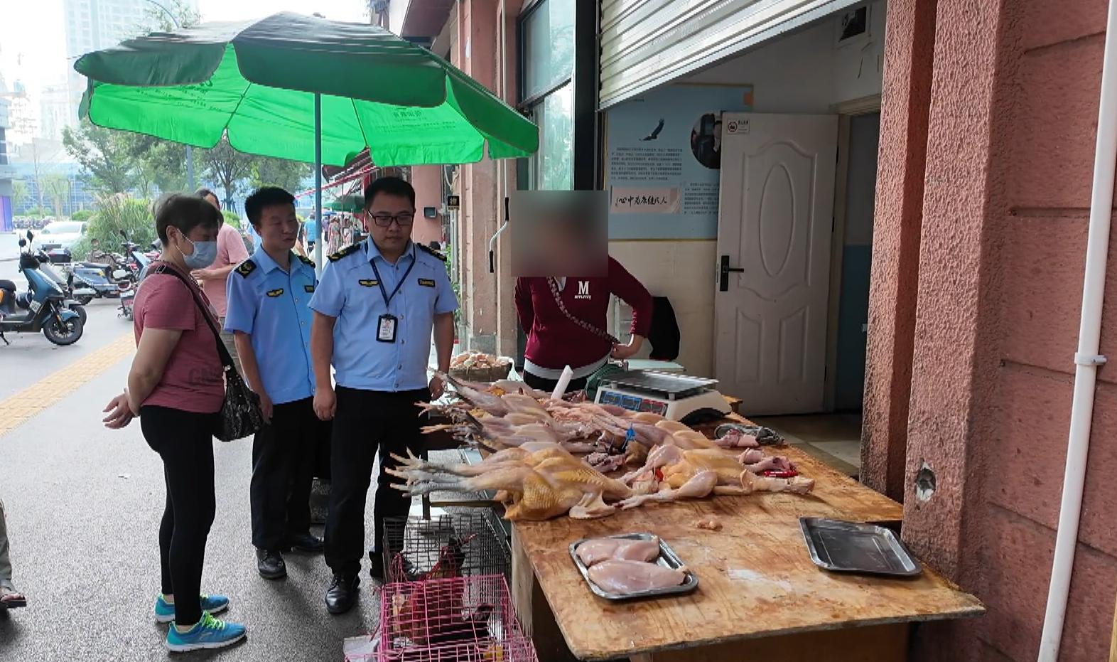 西陵区学院市场监管所执法人员现场查处商户交易和宰杀活禽