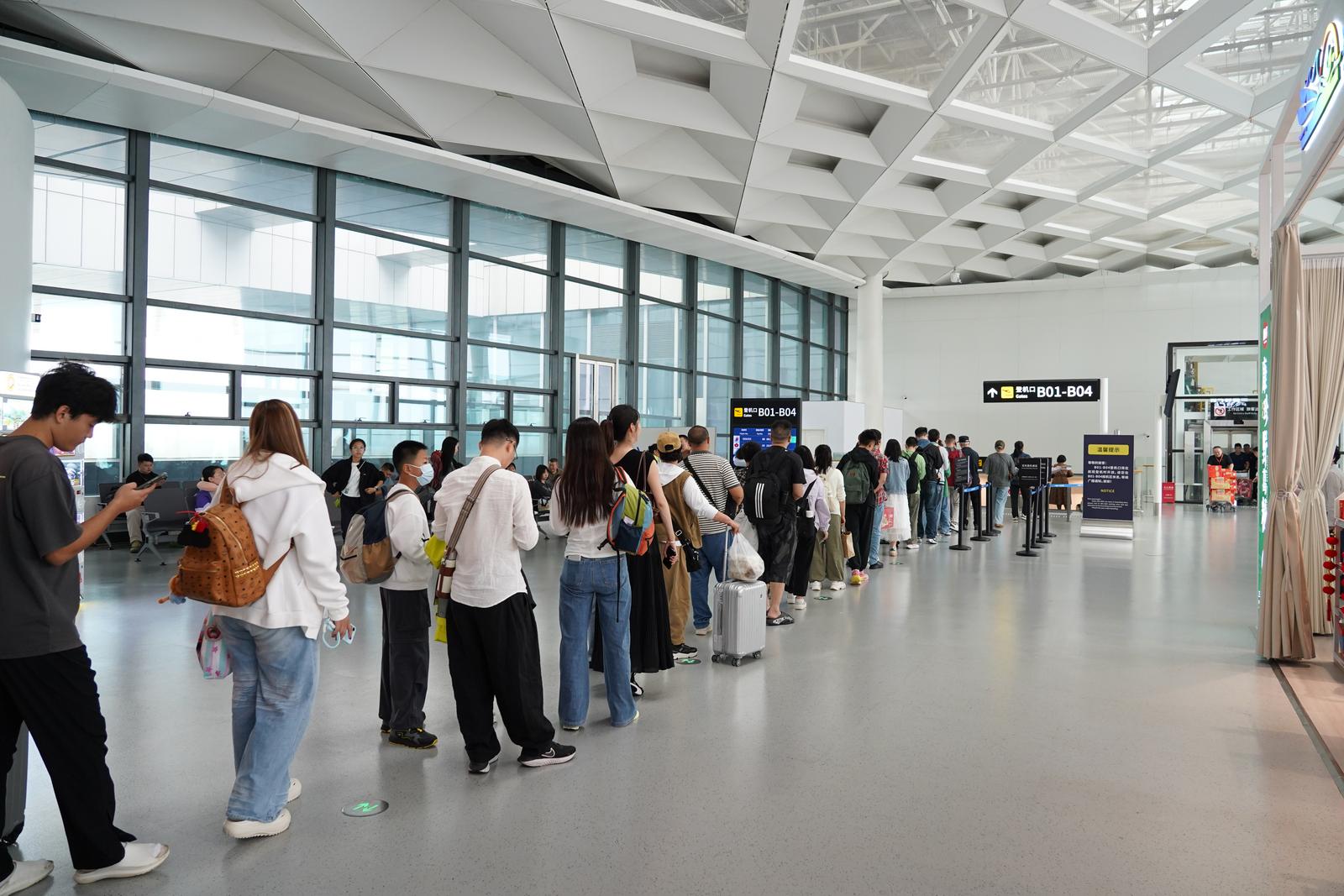 同时,增派“红马甲”志愿者,为旅客提供引导、咨询等服务;并适时增开值机柜台和安检通道,提高旅客登机效率,减少排队等待时间。