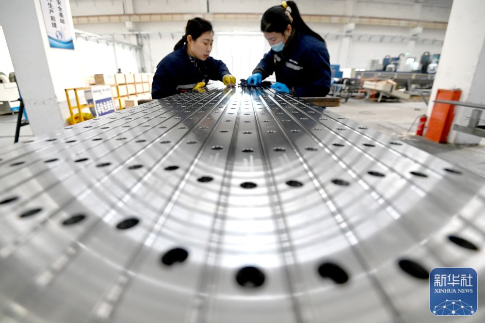 12月15日,在位于江苏省江都高新技术产业开发区的江苏广泓重工设备有限公司,工人在顶管机总装车间作业。新华社发(任飞摄)