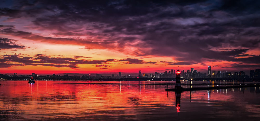 美丽中国|日出日落画江城 杳杳长空敛云烟