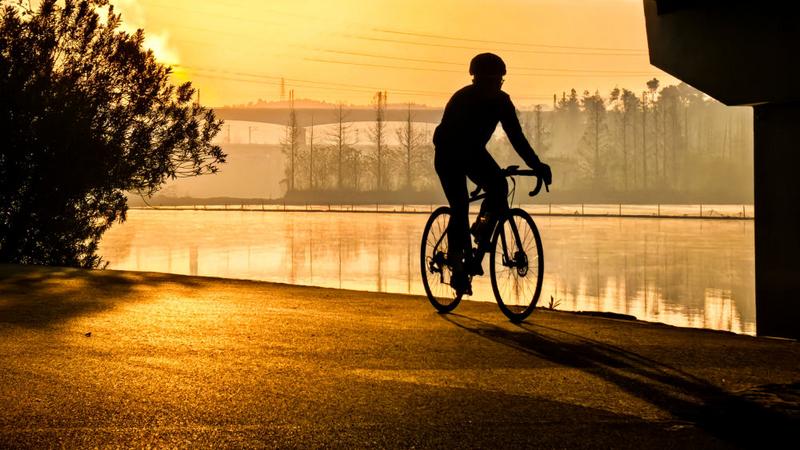 12月14日,骑行爱好者在武汉市东湖风景区骑行。新华社记者 肖艺九 摄